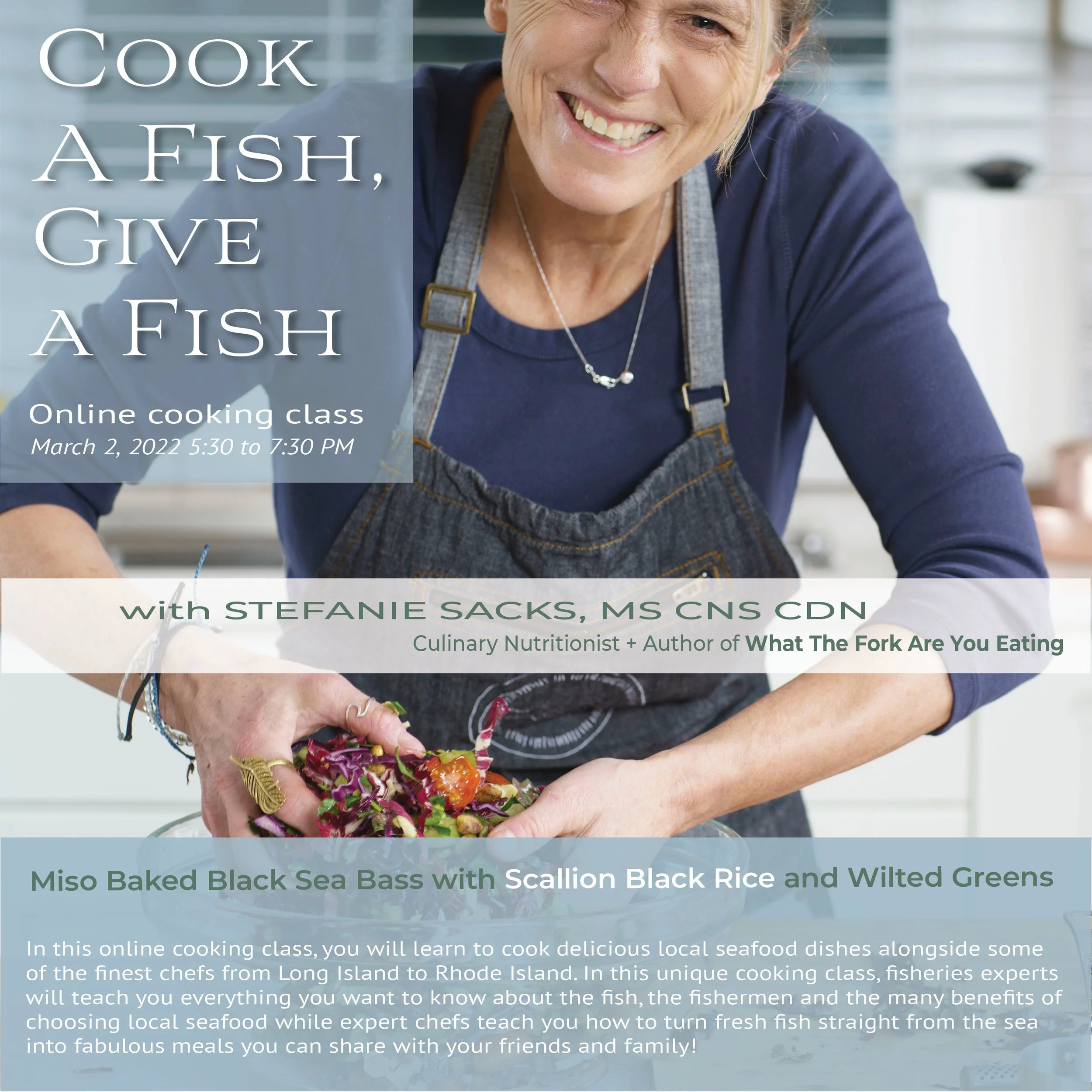 Welcome to "Cook A Fish, Give A Fish"! In this online cooking class, you will learn to cook delicious local seafood dishes alongside some of the finest chefs from Long Island to Rhode Island. In this unique cooking class, fisheries experts will teach you everything you want to know about the fish, the fishermen and the many benefits of choosing local seafood while expert chefs teach you how to turn fresh fish straight from the sea into fabulous meals you can share with your friends and family!